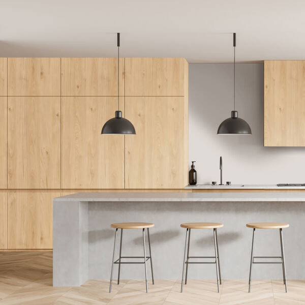 Diseño de Madera Nogal con nudos y vetas muy marcadas que le dan una apariencia rústica y natural a la madera, con una tonalidad miel muy parecida a la madera natural del copal.