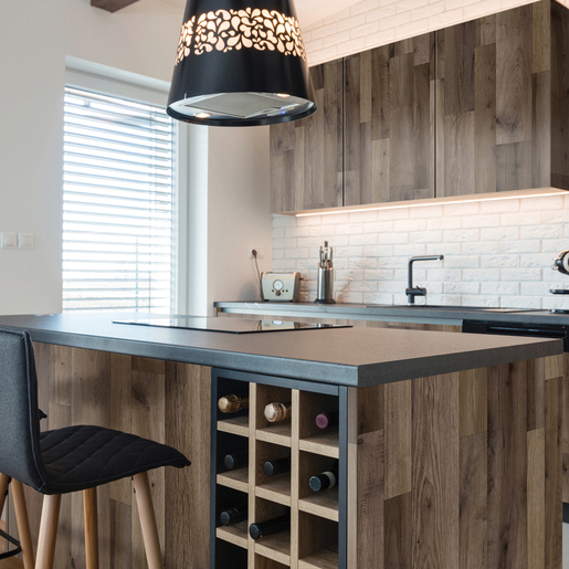 Haciendo referencia al estilo particular de construcción de América del Norte, este diseño de madera Roble tableteada cuenta con una estructura única y original que puede ser aplicada en ambientes de estilo industrial y vanguardista.